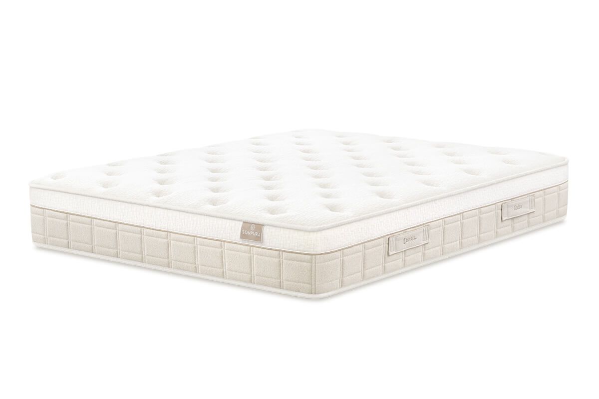 La tecnología Multisac Advanced convierte al colchón Indra en la elección ideal para quienes buscan un descanso superior. Sonpura® incorpora un suave efecto masaje que alivia y tonifica el cuerpo sin renunciar a una firmeza óptima y estable cada noche.
