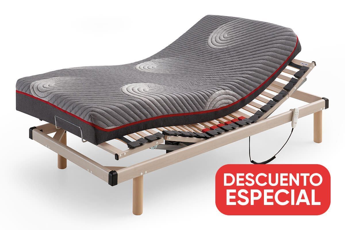 - Somier articulado Hukla Kronos-M: De estructura y láminas de madera de haya vaporizada y soporte para doble lámina especial en Hytrel elastómero indeformable con 12 tensores en la zona lumbar para ajustar la firmeza. Dispone de 5 planos de articulación que elevan el tronco y las piernas en vertical y en horizontal.